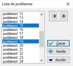 Para mostrar la lista existente use el comando "Lista de problemas", el botón activo de la Barra de herramientas o la combinación de teclas [Mayús+F10]. Las posiciones seleccionadas son memorizadas al cerrar la lista.